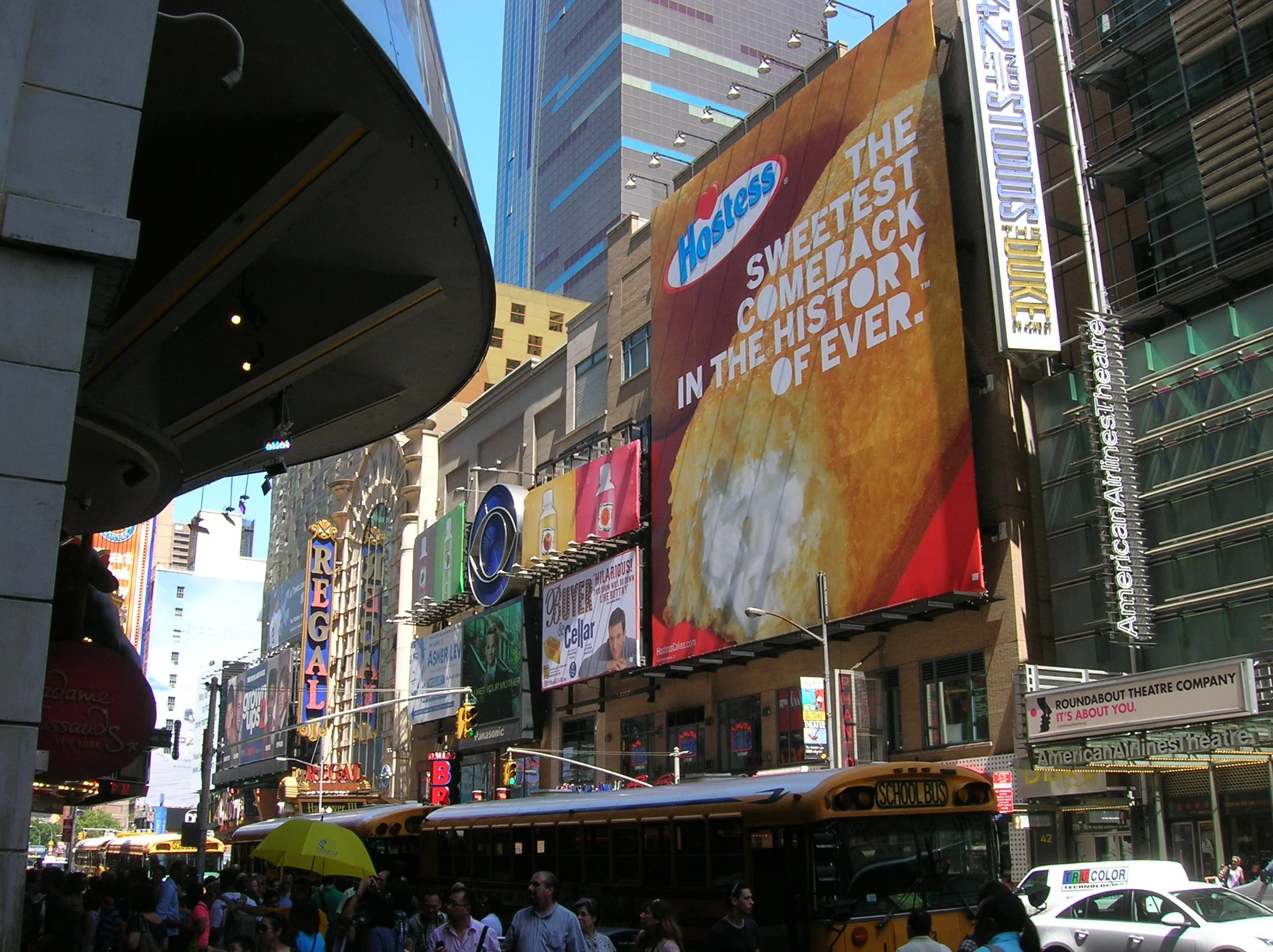 On July 15, 2013, we launched The Sweetest Comeback In The History Of Ever.™ With Al Roker riding shotgun, the Hostess Twinkie truck made its first delivery on The NBC Today Show. Double decker tourist busses in New York, Chicago and Los Angeles were turned into giant sponge cakes. And the Hostess wallscapes around the country changed from the teaser message to the campaign tagline.